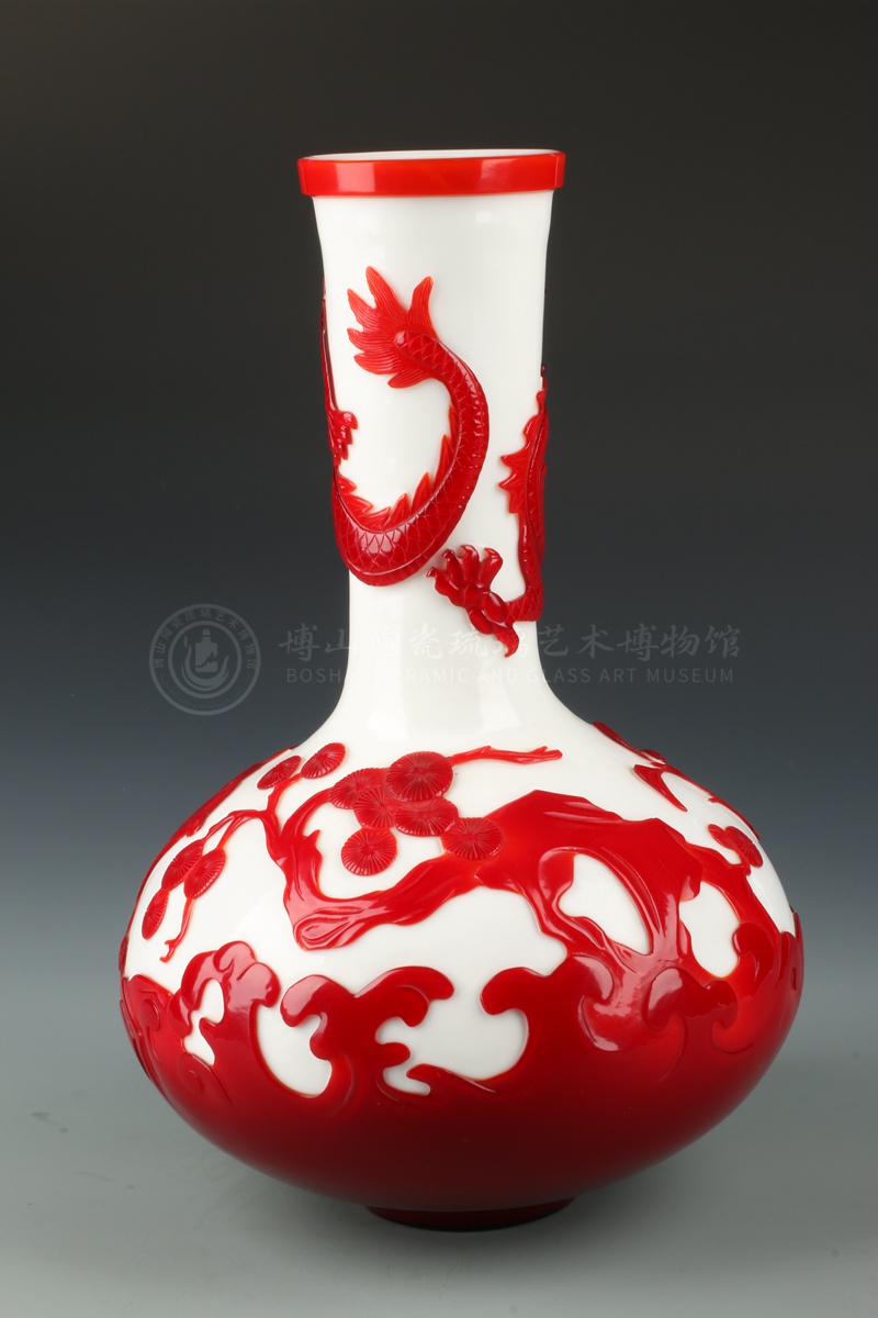 14寸白套红龙虎斗天球瓶